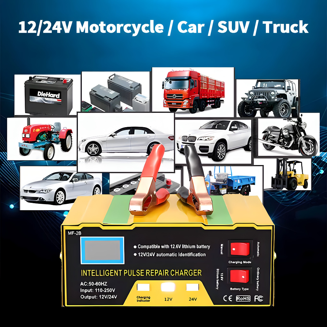 Ovaj uređaj podržava akumulatore od 12V i 24V, što ga čini pogodnim za širok spektar vozila, uključujući automobile, motocikle, kamione i čamce.