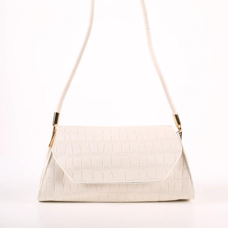 Zatvara se magnetom za brzo i praktično korišćenje, dok zlatni metalni detalji daju dodatnu dozu luksuza. Kompaktna, ali dovoljno prostrana za sve osnovne potrepštine, idealna je za večernje izlaske, proslave ili stilizovane dnevne kombinacije. Bela boja i reljefna tekstura čine ovu torbicu savršenim izborom za žene koje vole sveden, ali efektan dizajn.