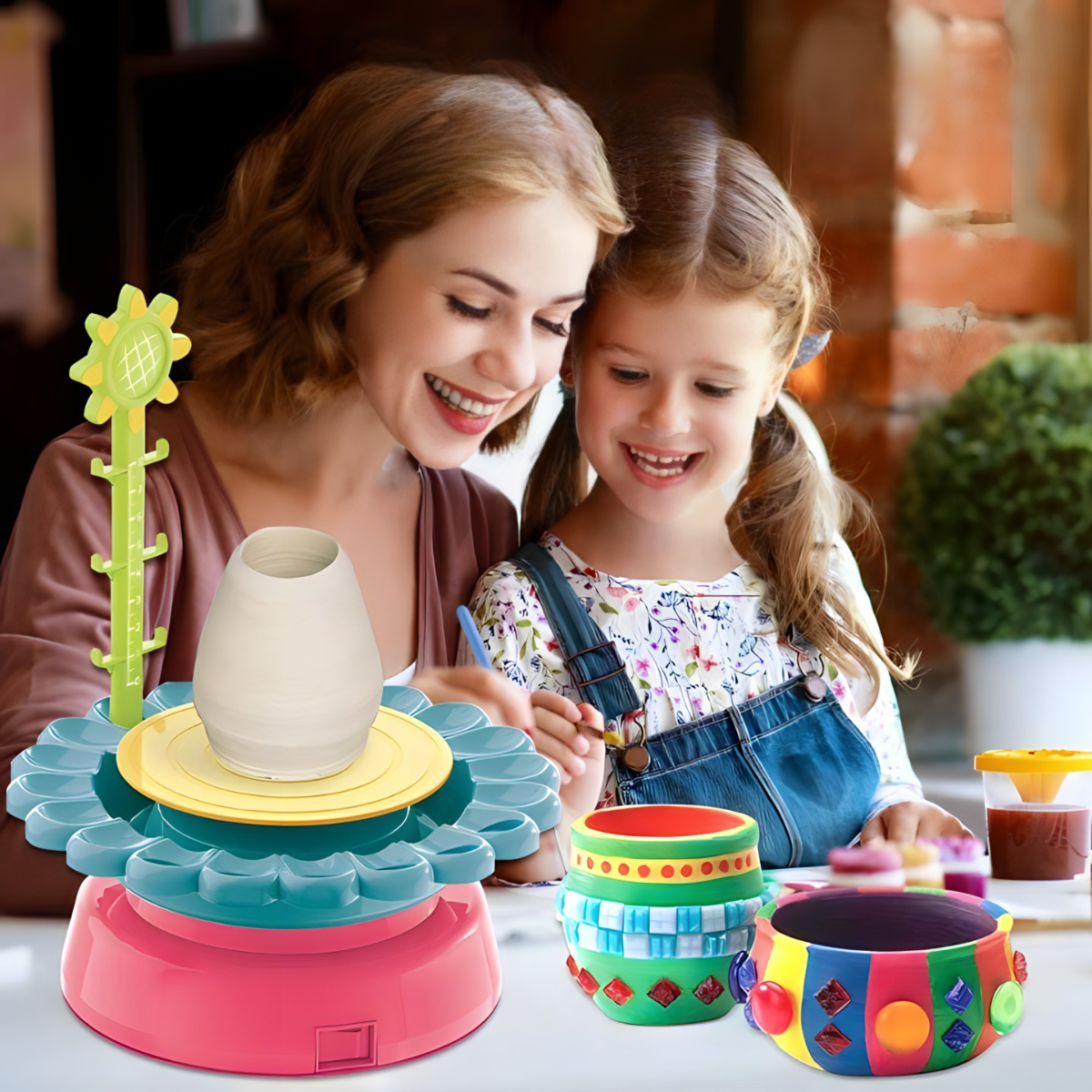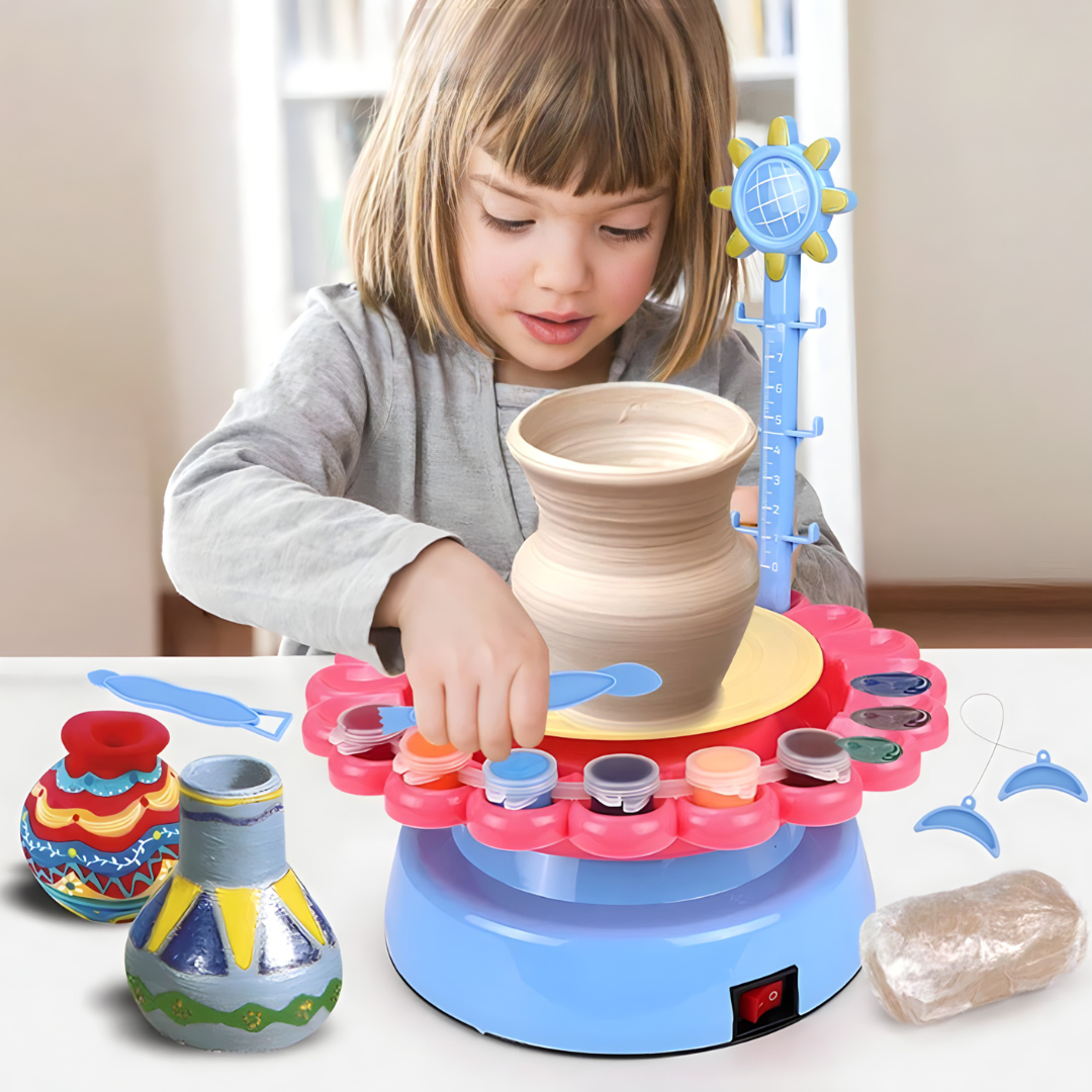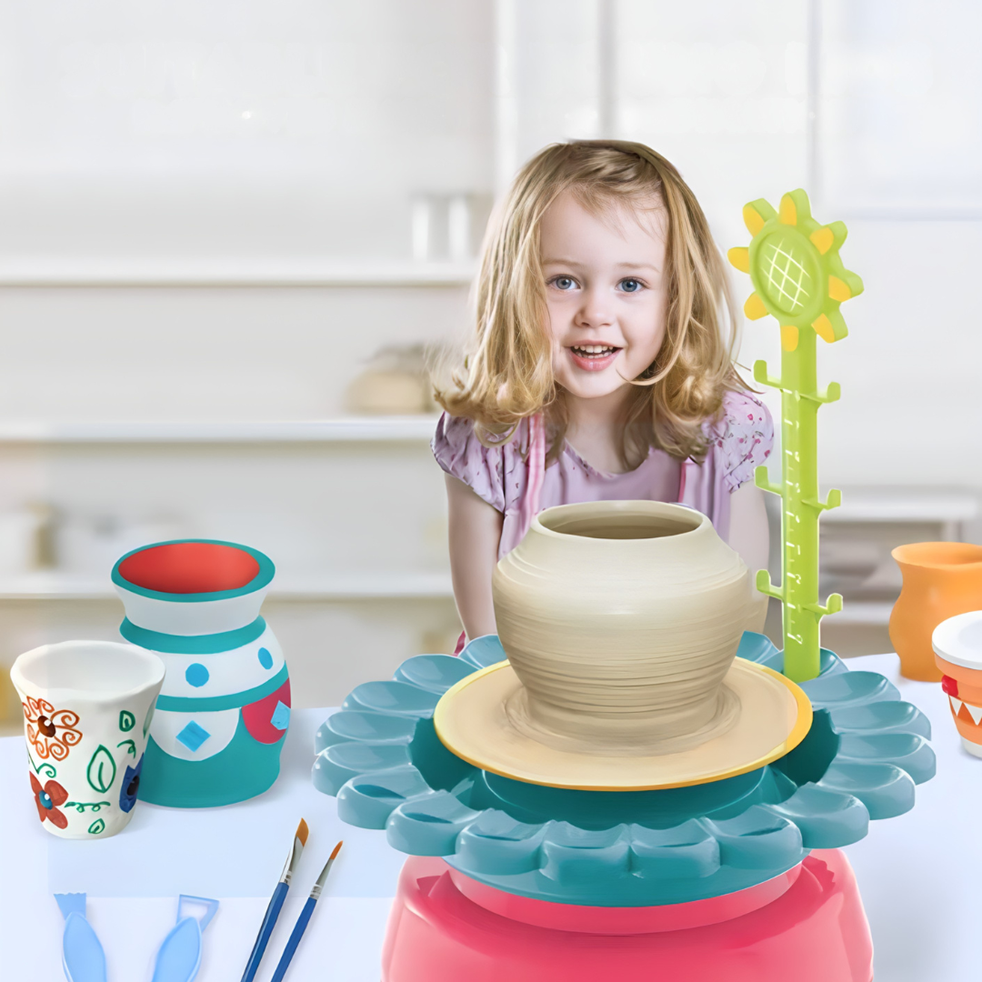 Grnčarski set za decu je kompletan kreativni paket koji detetu omogućava da pravi prave rukotvorine od gline – od činijica i šoljica do ukrasnih predmeta. Uz električnu točak mašinu, alatke i glinu, dete ulazi u svet oblikovanja, igre i maštovitog stvaranja.