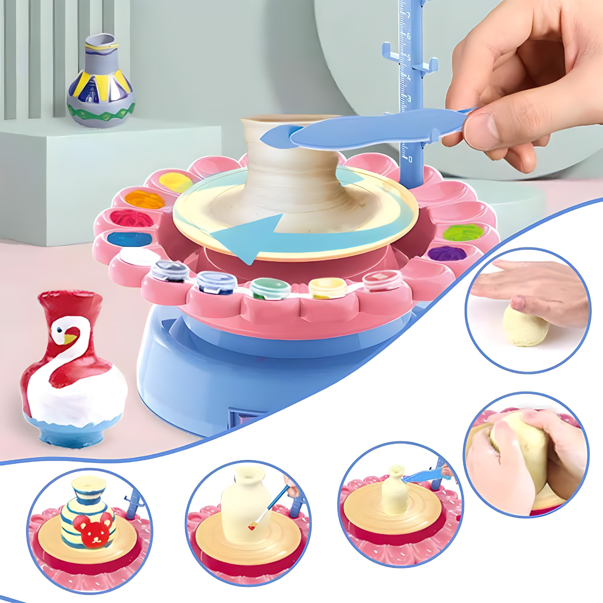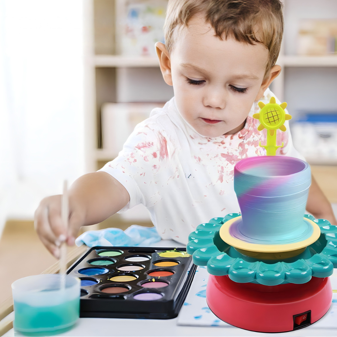 Ovo nije samo igračka – u pitanju je pravi točak za glinu za decu koji funkcioniše jednostavno, pritiskom na dugme. Dete oblikuje predmete baš kao pravi grnčar, stičući veštine finih pokreta, strpljenje i koncentraciju. Točak je bezbedan za korišćenje i pruža veliko zadovoljstvo u procesu rada.