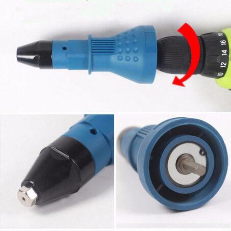 Dodatak za nitovanje je potrebno zakačiti poput bilo kog drugog dodatka za bušilicu, zatim odaberite umetak i spremni ste za posao.