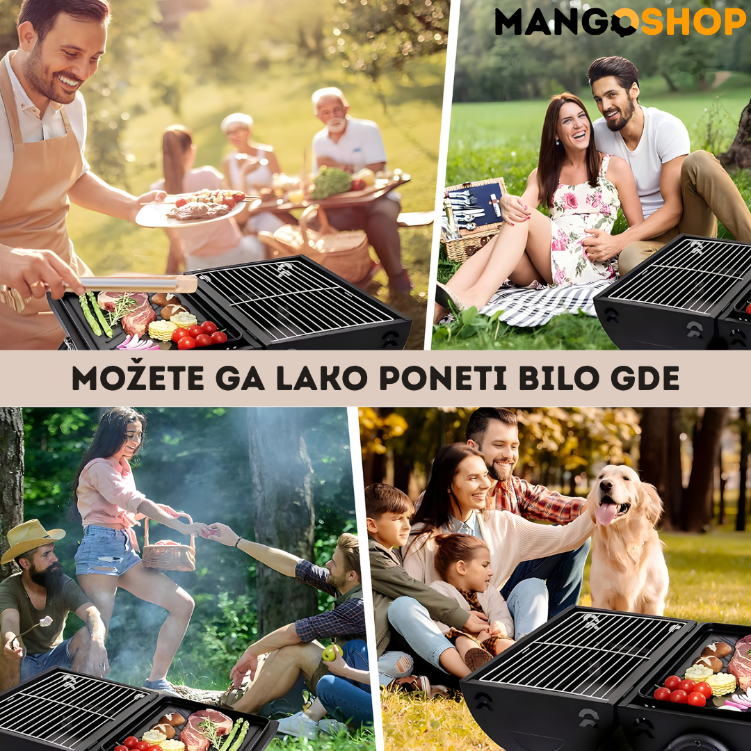 Upoznajte naš Prenosivi roštilj na ugalj – idealno rešenje za sve ljubitelje roštiljanja na otvorenom. Bez obzira da li planirate kampovanje, piknik, izlet na plažu ili jednostavno želite da uživate u roštiljanju u dvorištu, ovaj roštilj će ispuniti sva vaša očekivanja.