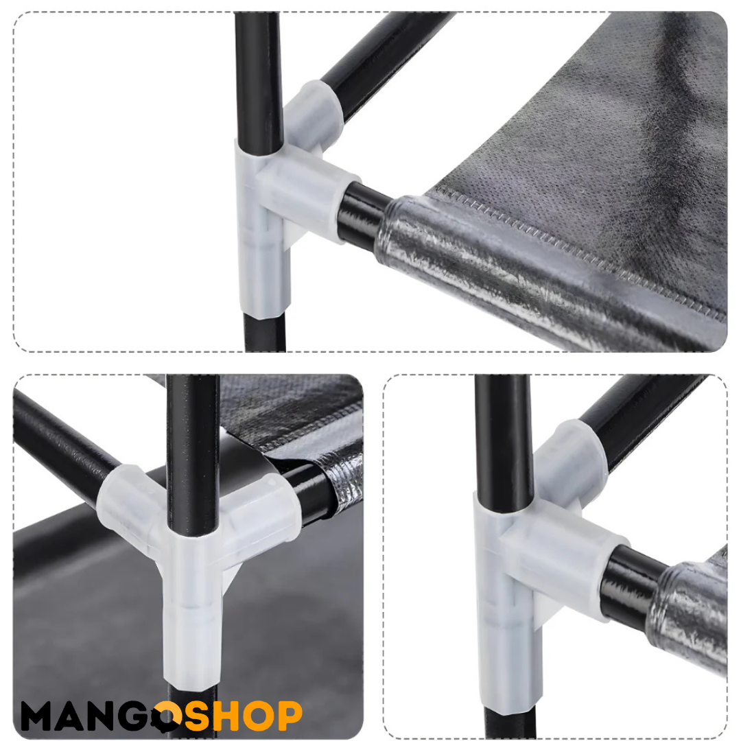 Nema potrebe za komplikovanim uputstvima ili alatima. Montaža ovog stalka je izuzetno jednostavna – samo umetnite metalne cevi u plastične konektore i stalak je spreman za upotrebu. Njegova prenosiva i sklopiva priroda omogućava lako premeštanje i skladištenje kada nije u upotrebi.