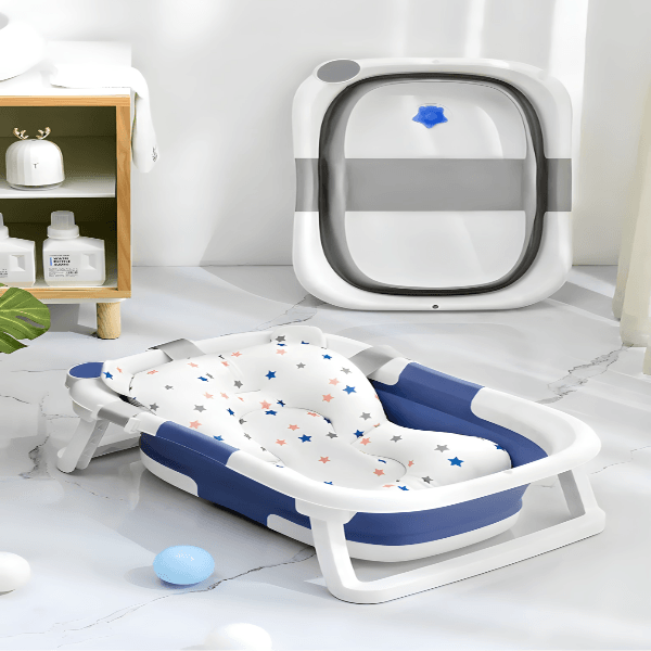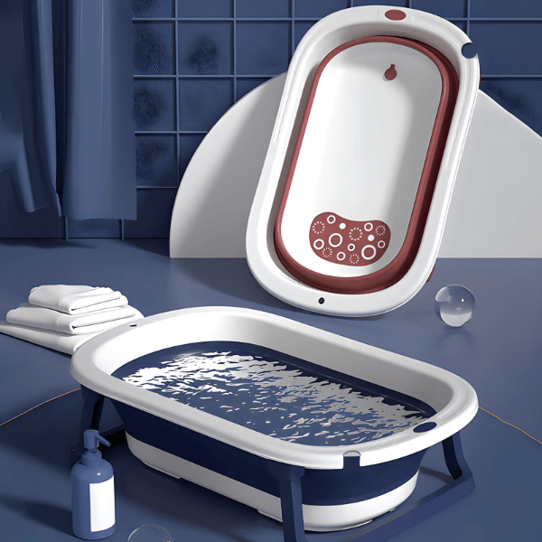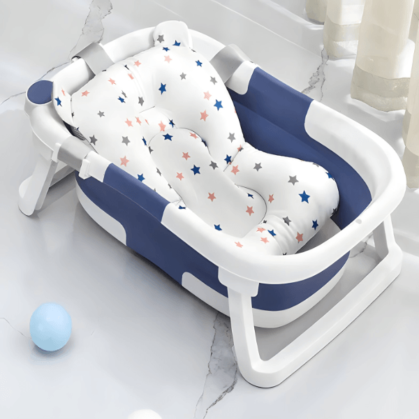 Paket sadrži: 1x Rasklopiva mini kada za kupanje beba, 1 x Jastuk za kupanje beba.
