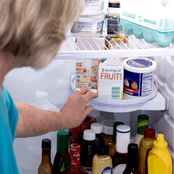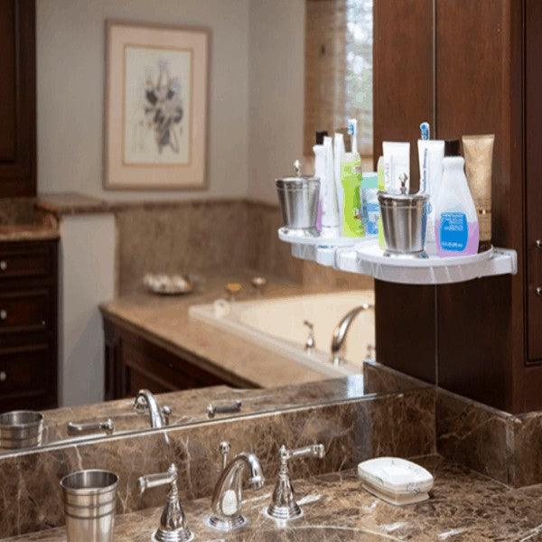Povećajte prostor za skladištenje pomoću ove rotirajuće police koja je idealna za organizaciju soseva, šminke, sredstava za kupanje i sličnih stvari.
