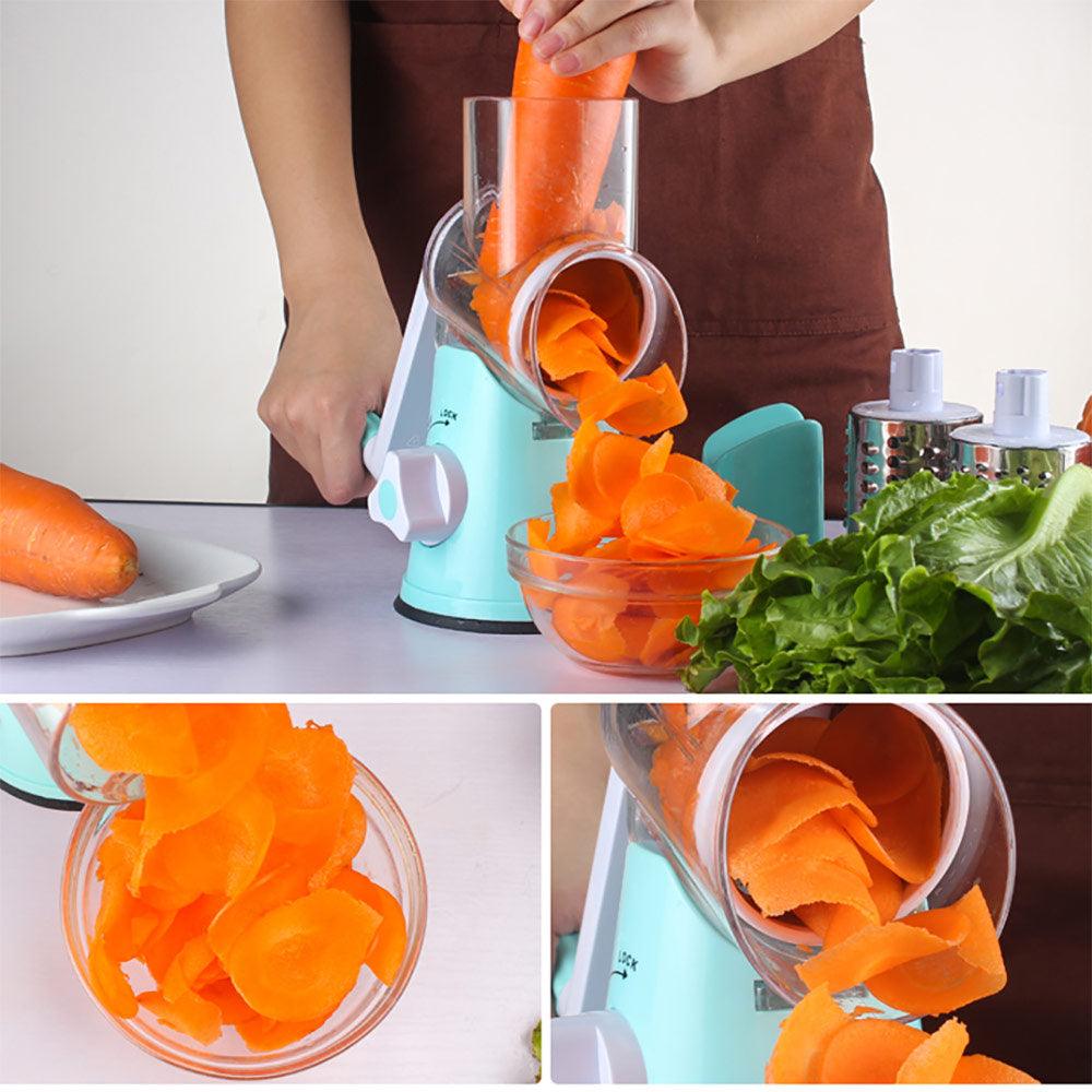 Ubacite hranu i zatvorite poklopcem, okrećite ručku i posmatrajte kako fino iseckana hrana ispada pravo u činiju.
