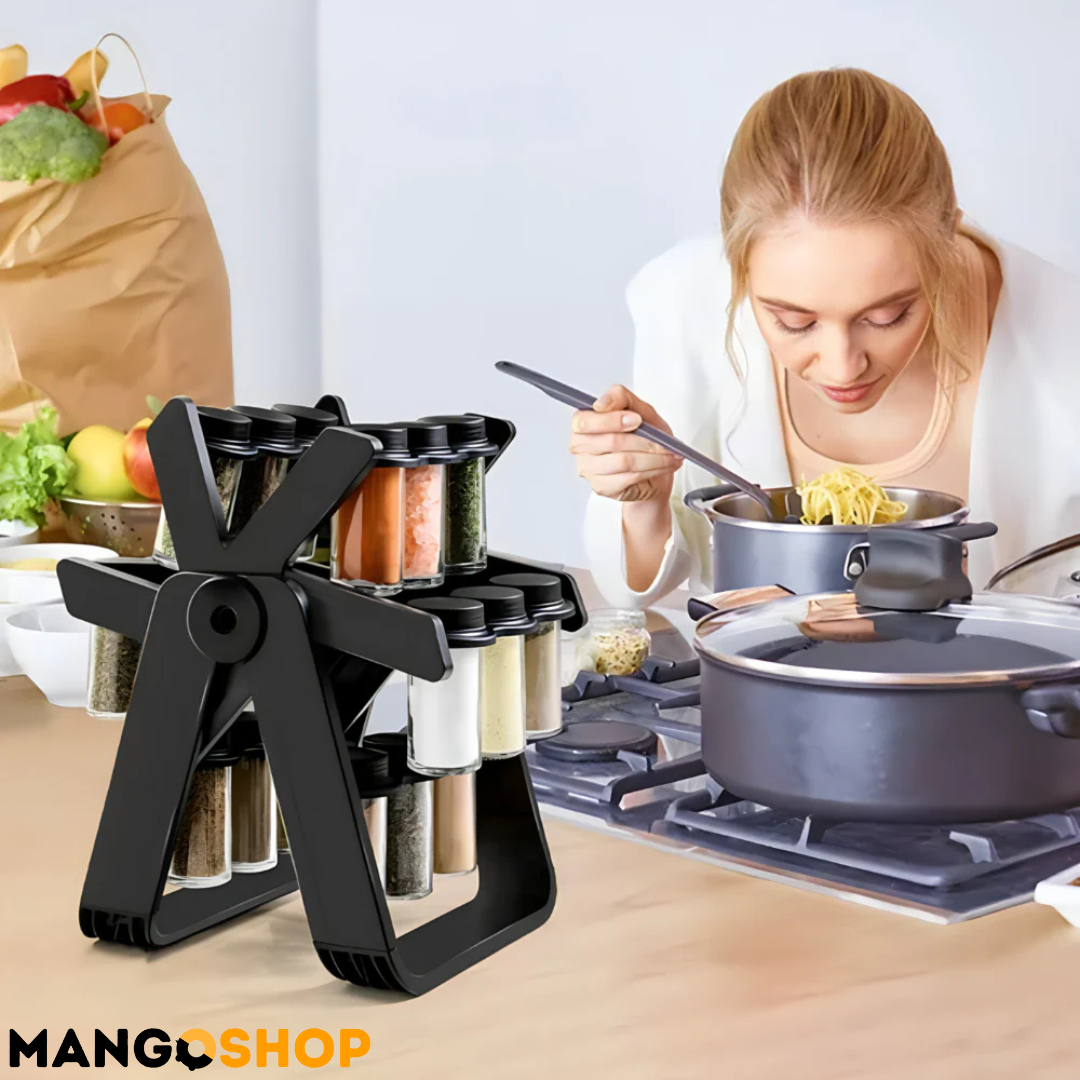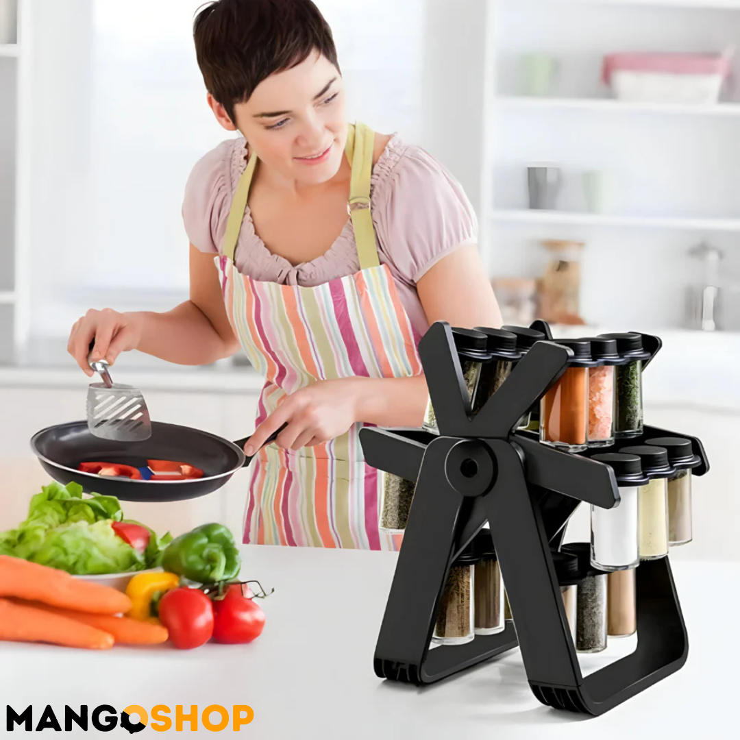 - Rotirajte i koristite – Okrenite stalak i pronađite željeni začin za tili čas.