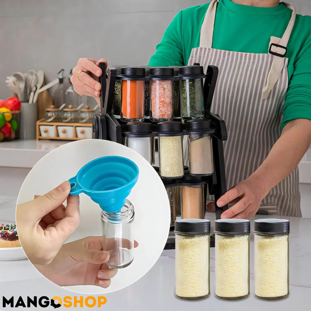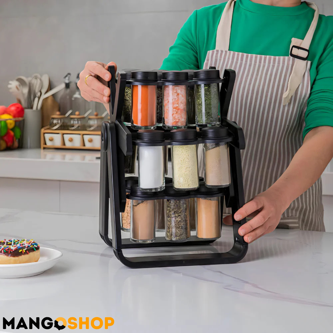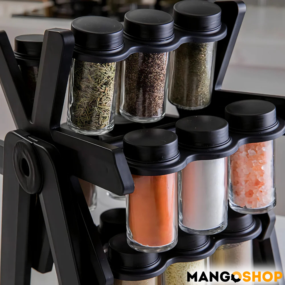 - Rotirajući dizajn – Omogućava lako pronalaženje željenog začina jednostavnim okretanjem stalka.