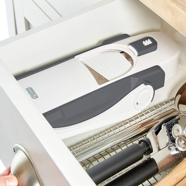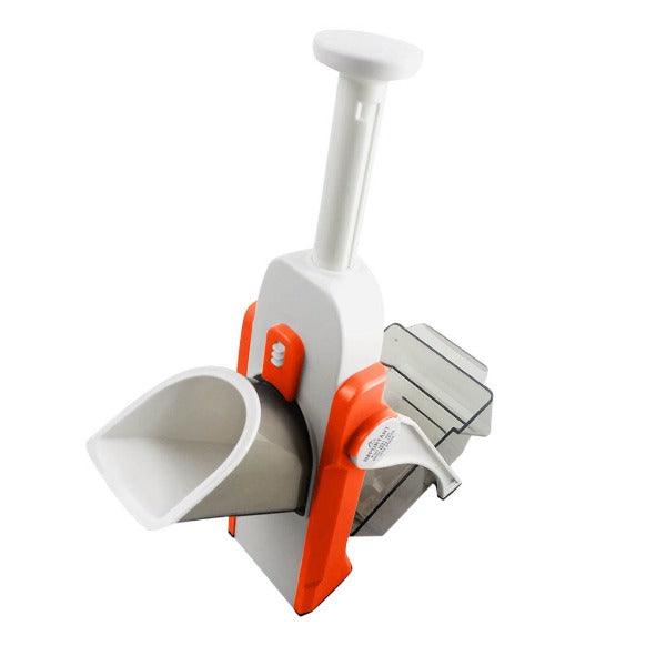 Podesite debljinu sečiva, stavite voće ili povrće u držač i iseckajte na željene parčiće očas posla.