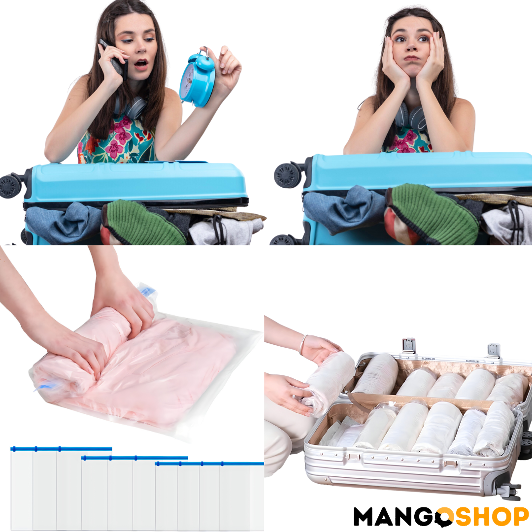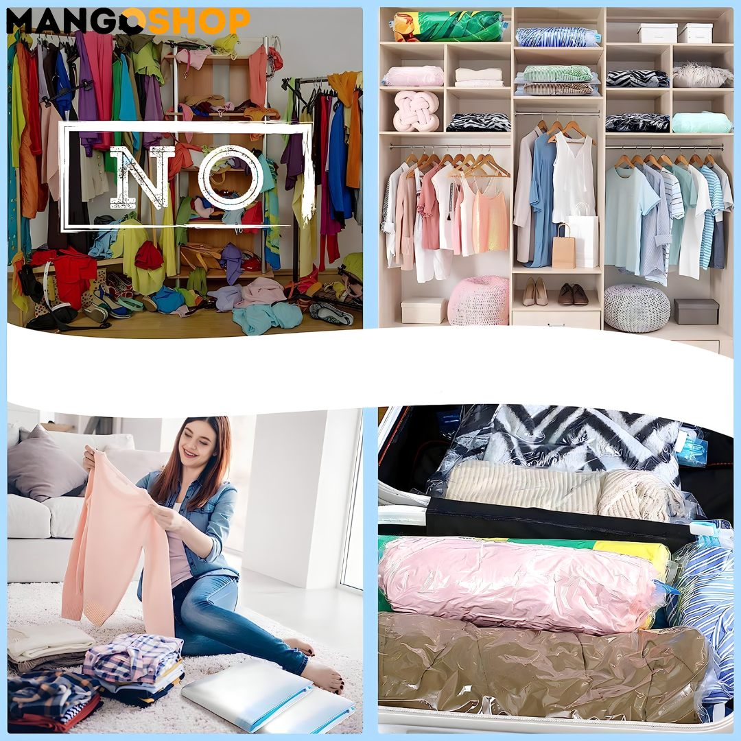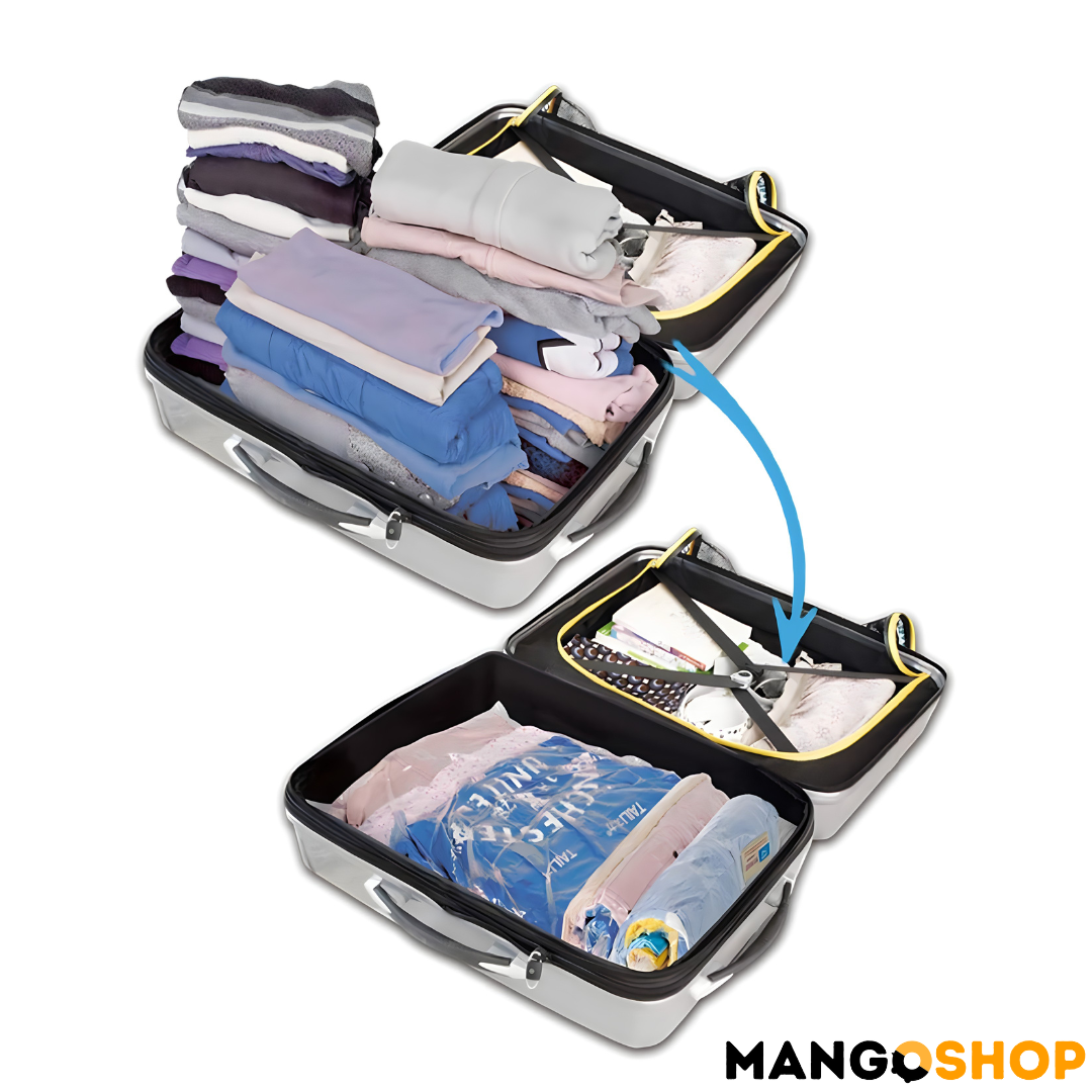Uz Mangov set samokompresionih kesa za skladištenje i putovanja, konačno možete da organizujete svoj prostor, smanjite zapreminu stvari i uštedite vreme bez potrebe za vakum pumpama!