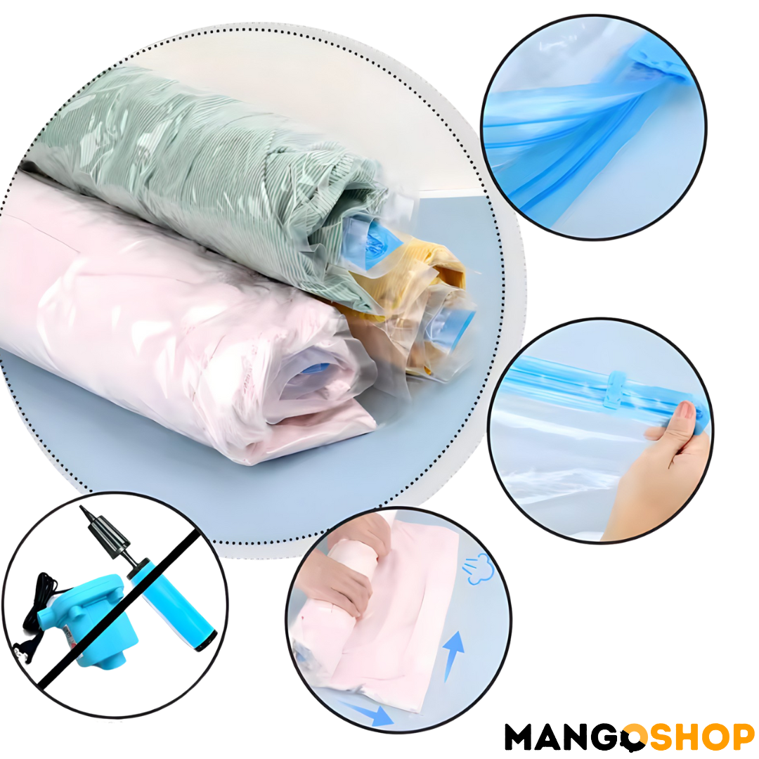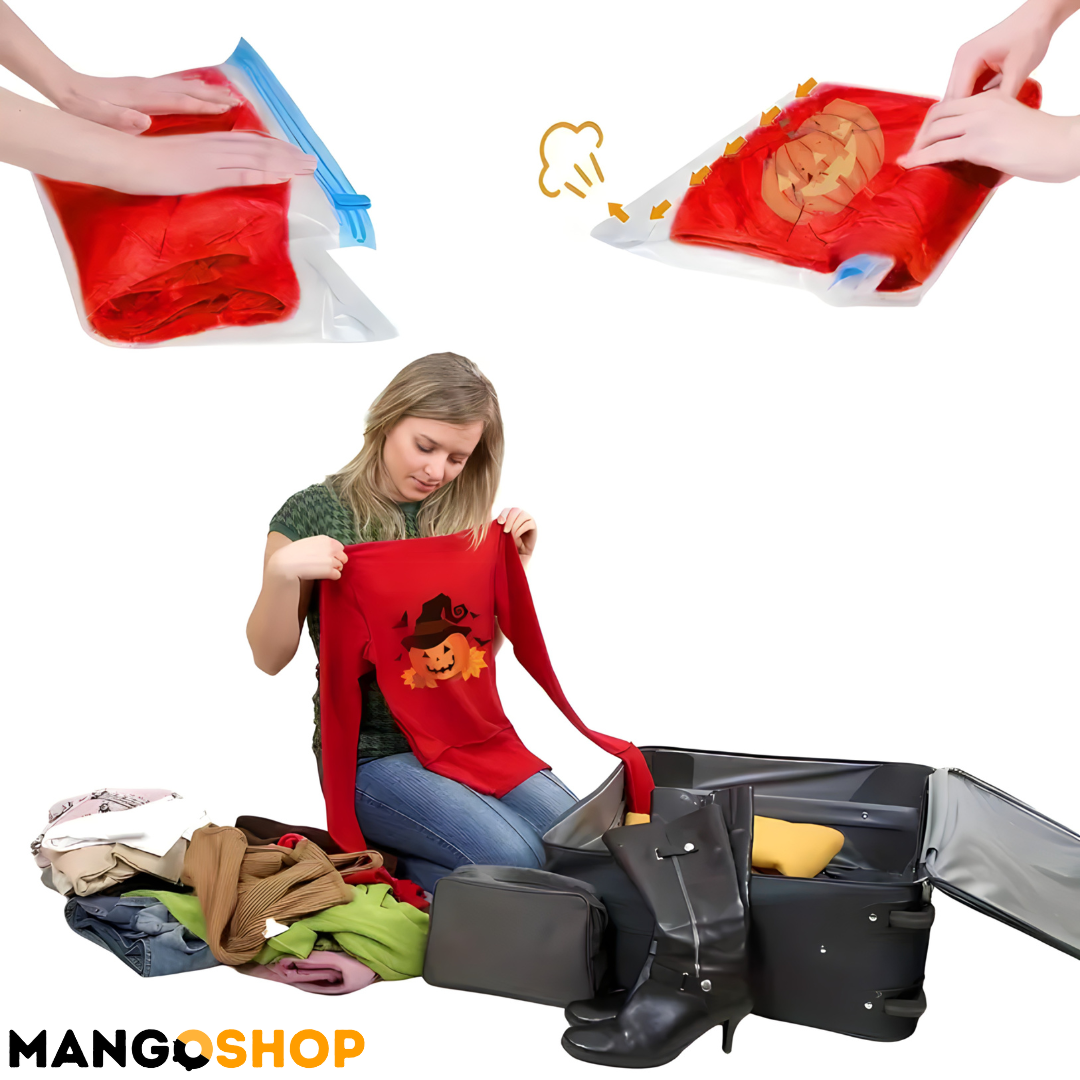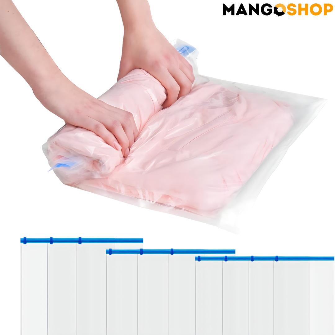Uz Mangov set samokompresionih kesa za skladištenje i putovanja, konačno možete da organizujete svoj prostor, smanjite zapreminu stvari i uštedite vreme bez potrebe za vakum pumpama!