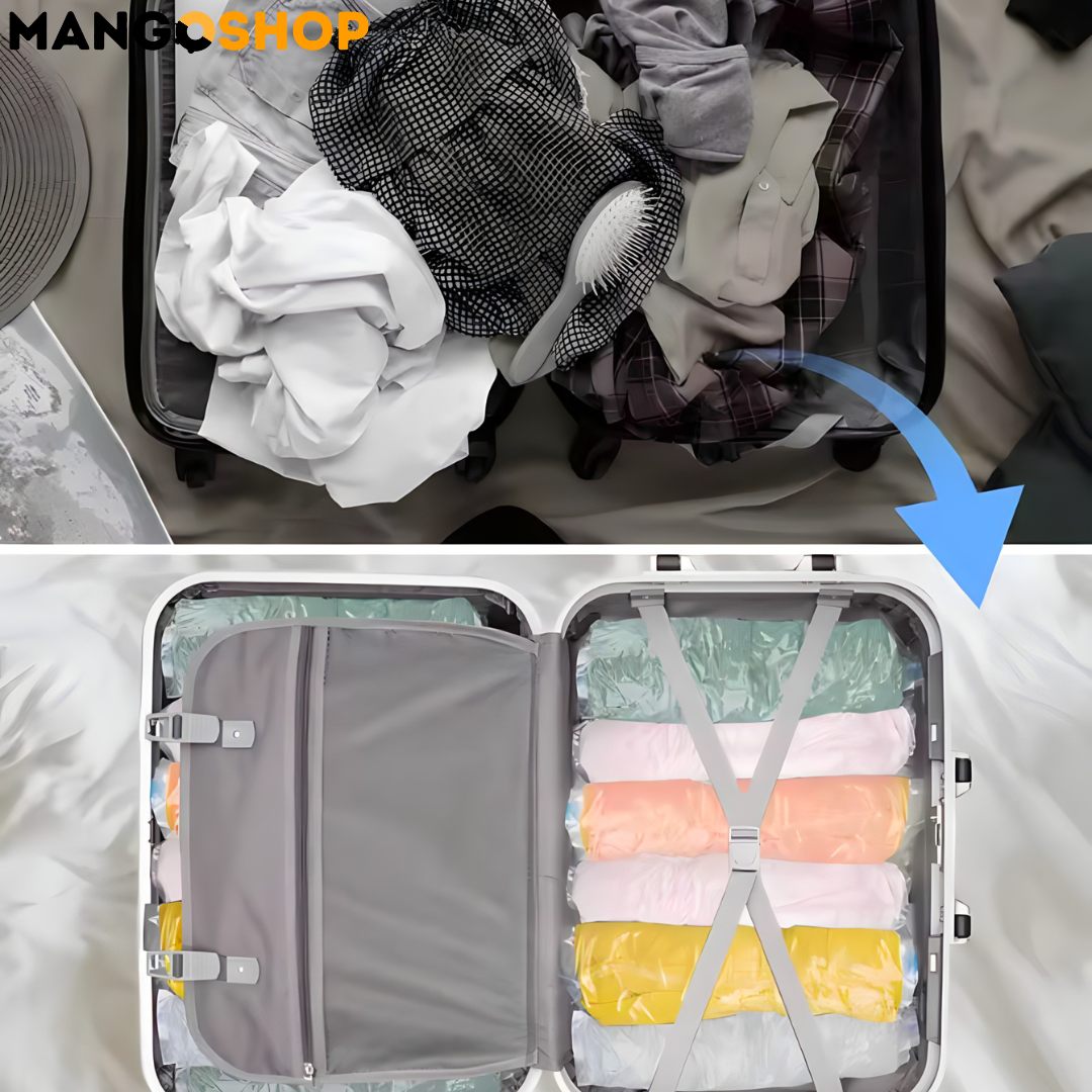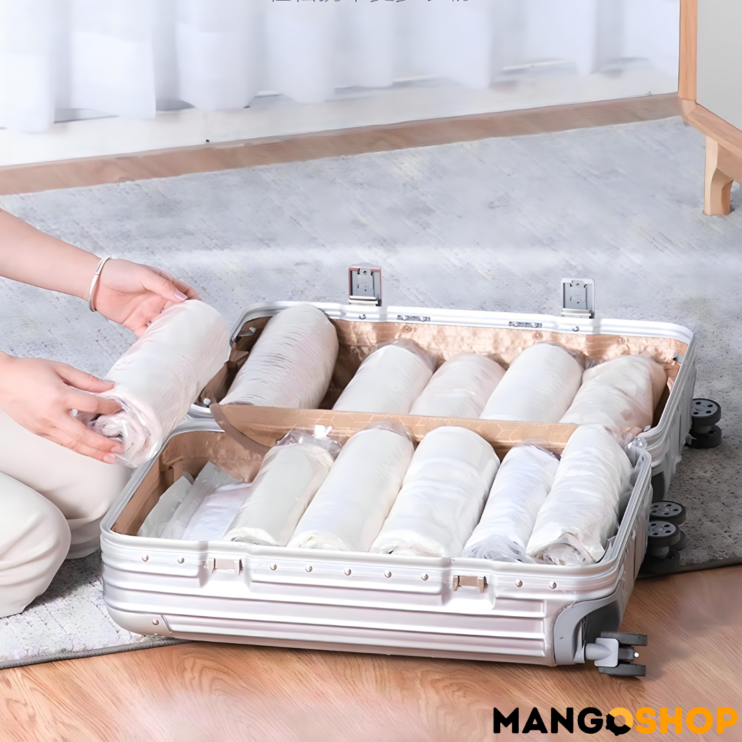 Ovaj set je savršen izbor za sve koji se suočavaju sa problemom nedostatka prostora. Zahvaljujući samokompresionom dizajnu, dovoljno je samo da pritisnete i rolujete i ona će smanjiti zapreminu vaših stvari do 80% – bez potrebe za pumpama ili dodatnim alatima!