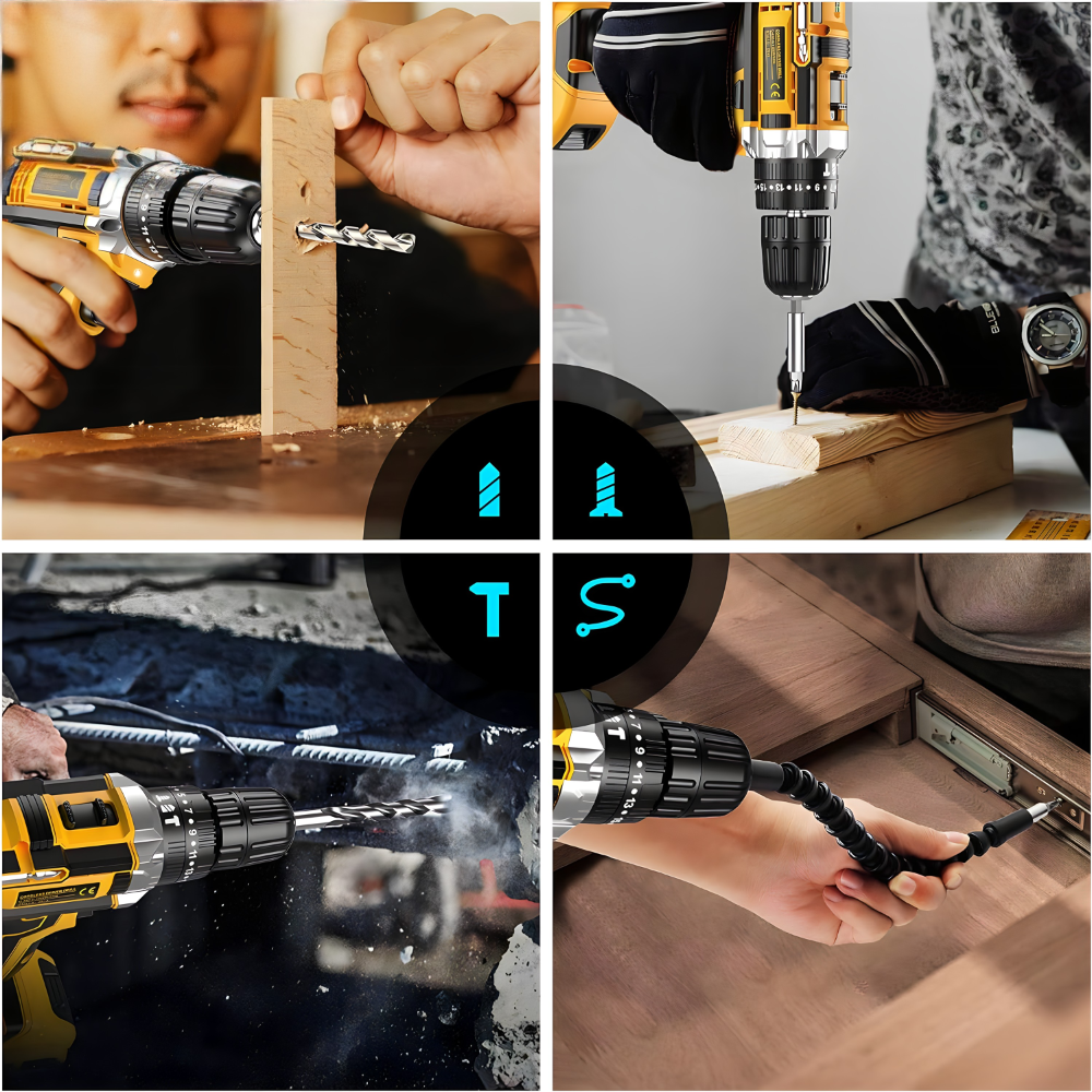 Aku bušilica iz ovog seta je dizajnirana da se koristi za različite materijale, uključujući beton, drvo i metal. Njena snaga i preciznost omogućavaju lako bušenje i šrafljenje u svakom od ovih materijala, bez potrebe za dodatnim alatima. Bilo da postavljate zavese, montirate nameštaj ili popravljate ogradu, ova bušilica će vam olakšati posao.