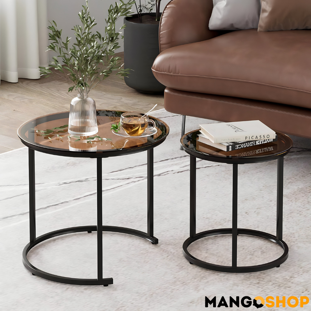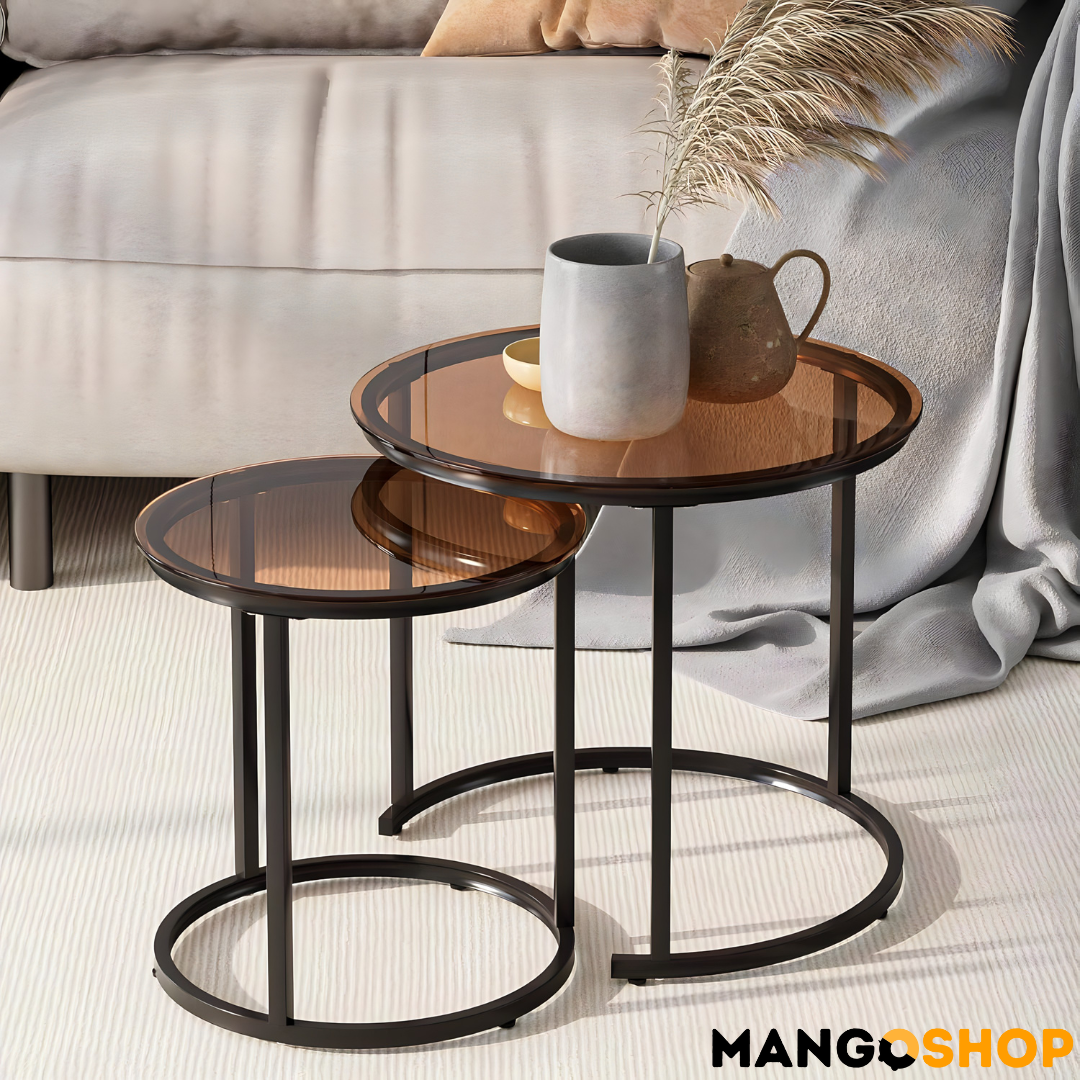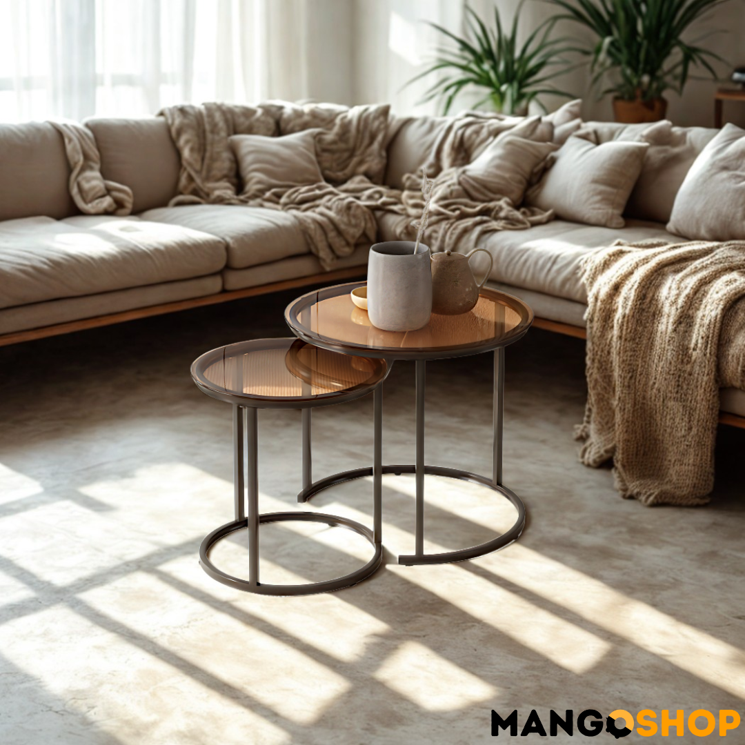 Okrugle staklene ploče sa crnim metalnim ramom daju ovom setu stočića luksuzan izgled. Bilo da ih koristite zajedno ili odvojeno, lako se uklapaju u klasične i moderne enterijere. Njihova prozirnost doprinosi osećaju prostranosti, dok crni ram unosi dozu elegancije.