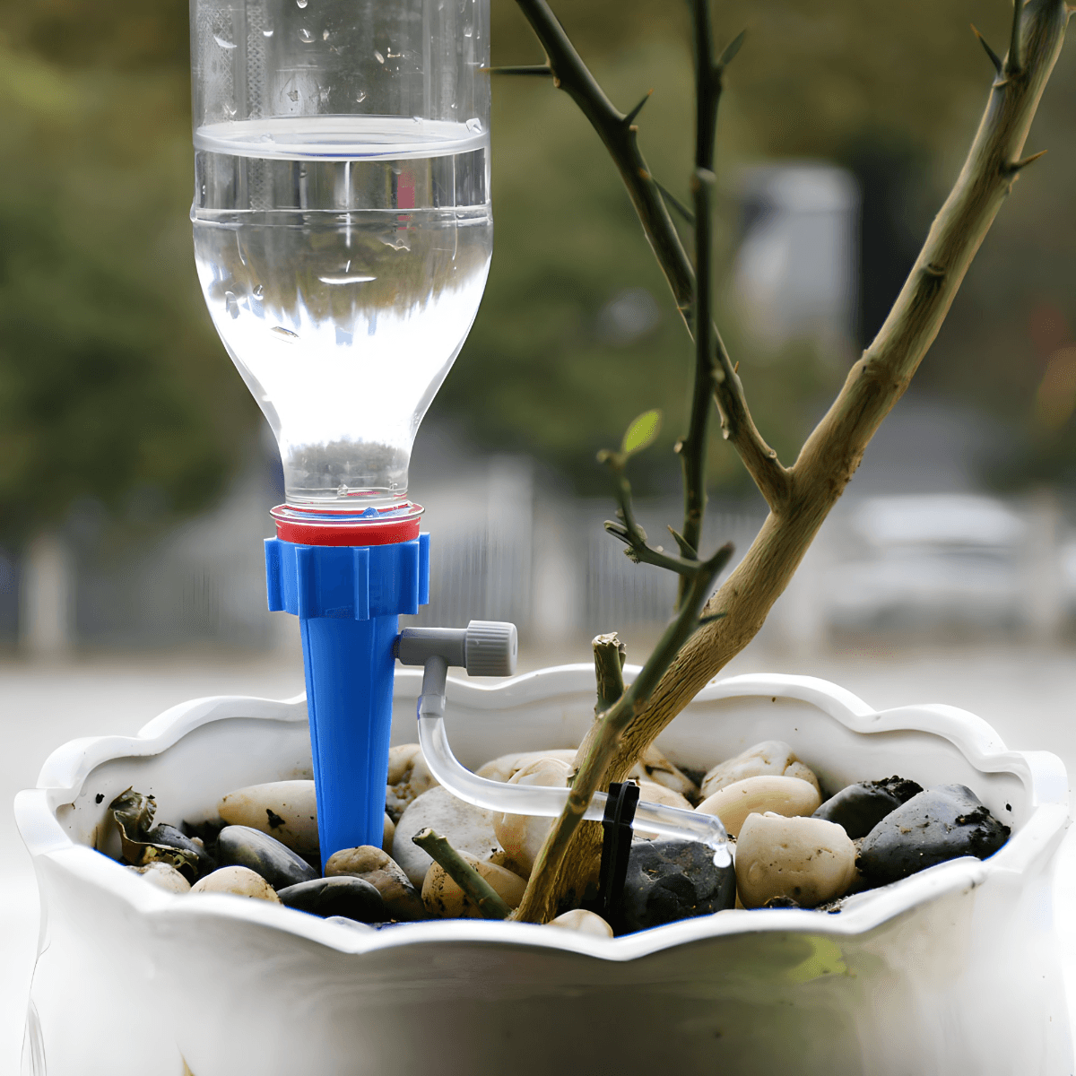 Ovaj inovativni kap-po-kap sistem omogućava vam zalivanje saksijskog cveća bez direktnog dotoka iz slavine i bez potrebe za dodatnim crevima. Samo postavite sistem na flašu, podesite brzinu protoka vode putem ventila, i vaše biljke će dobijati tačno onoliko vode koliko im je potrebno.