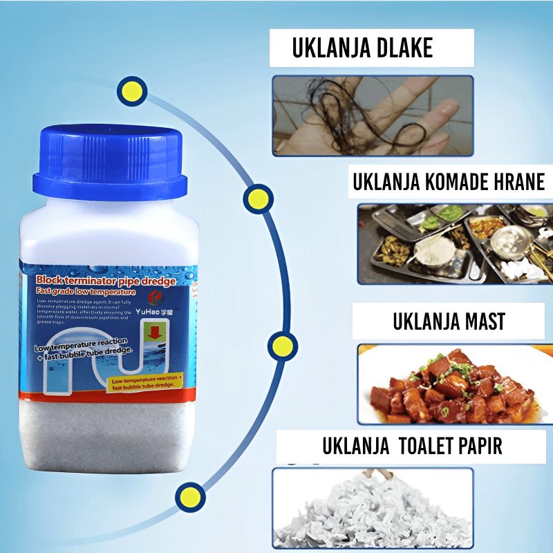 Sa našim proizvodom, jednostavno i efikasno otklonite naslage, masnoće i ostale začepljenja koja vremenom nastaju u cevima.