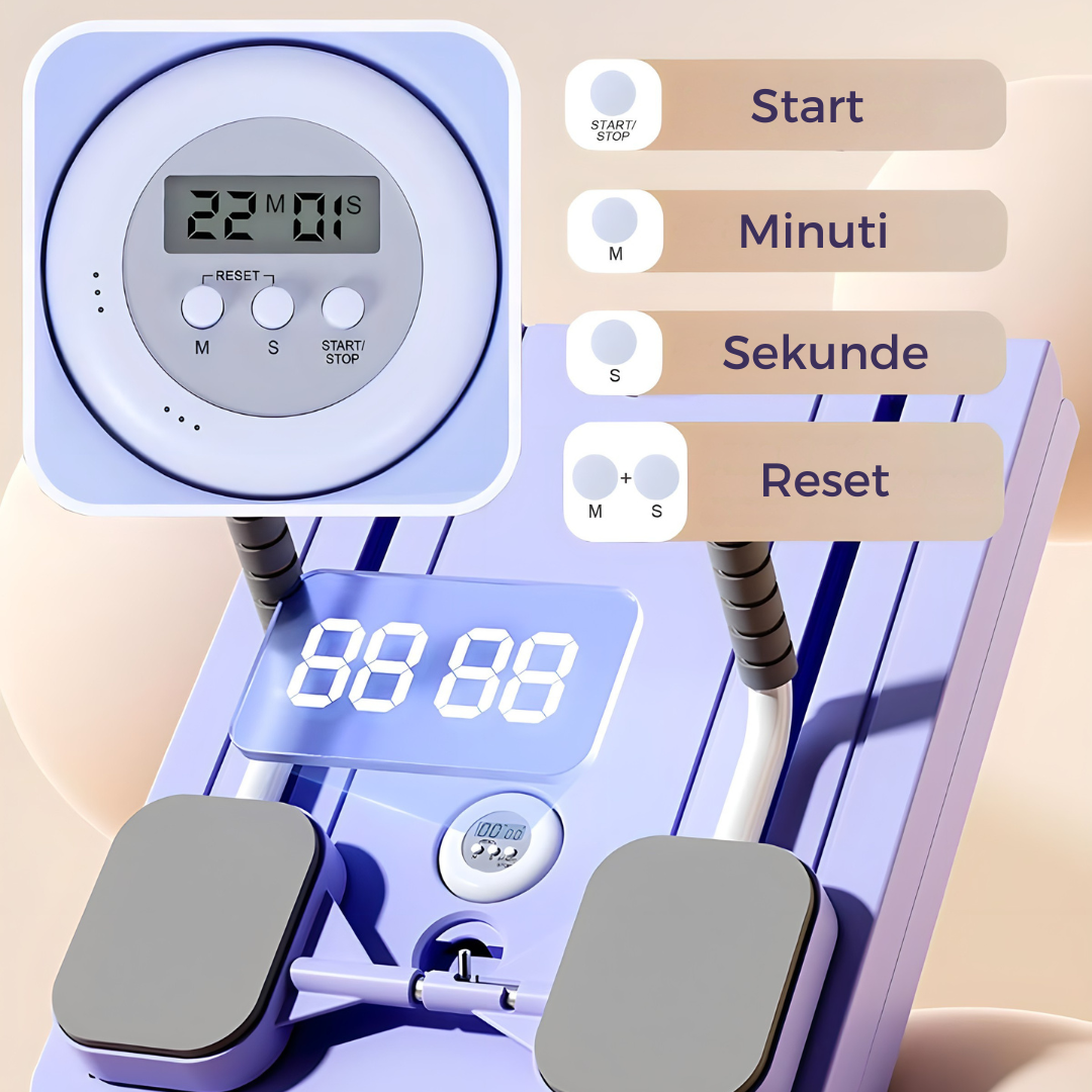 Naša tabla dolazi sa ugrađenim tajmerom koji vam omogućava da precizno pratite vreme vežbanja. Tako u svakom trenutku znate koliko ste trenirali i možete lako da postavite ciljeve — bilo da želite brze, desetominutne vežbe ili duže, intenzivne treninge.
