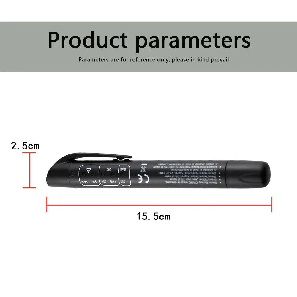 Duž olovke se nalaze lampice koje u zavisnosti od ispravnosti tečnosti prikazuju određenu boju. Zelena boja znači da je tečnost u redu i da je baterija na tester ispravna. Žuta lampica označava da ima 1-2,5% vode u tečnosti, a crvena da ima više, te da nije bezbedno voziti.