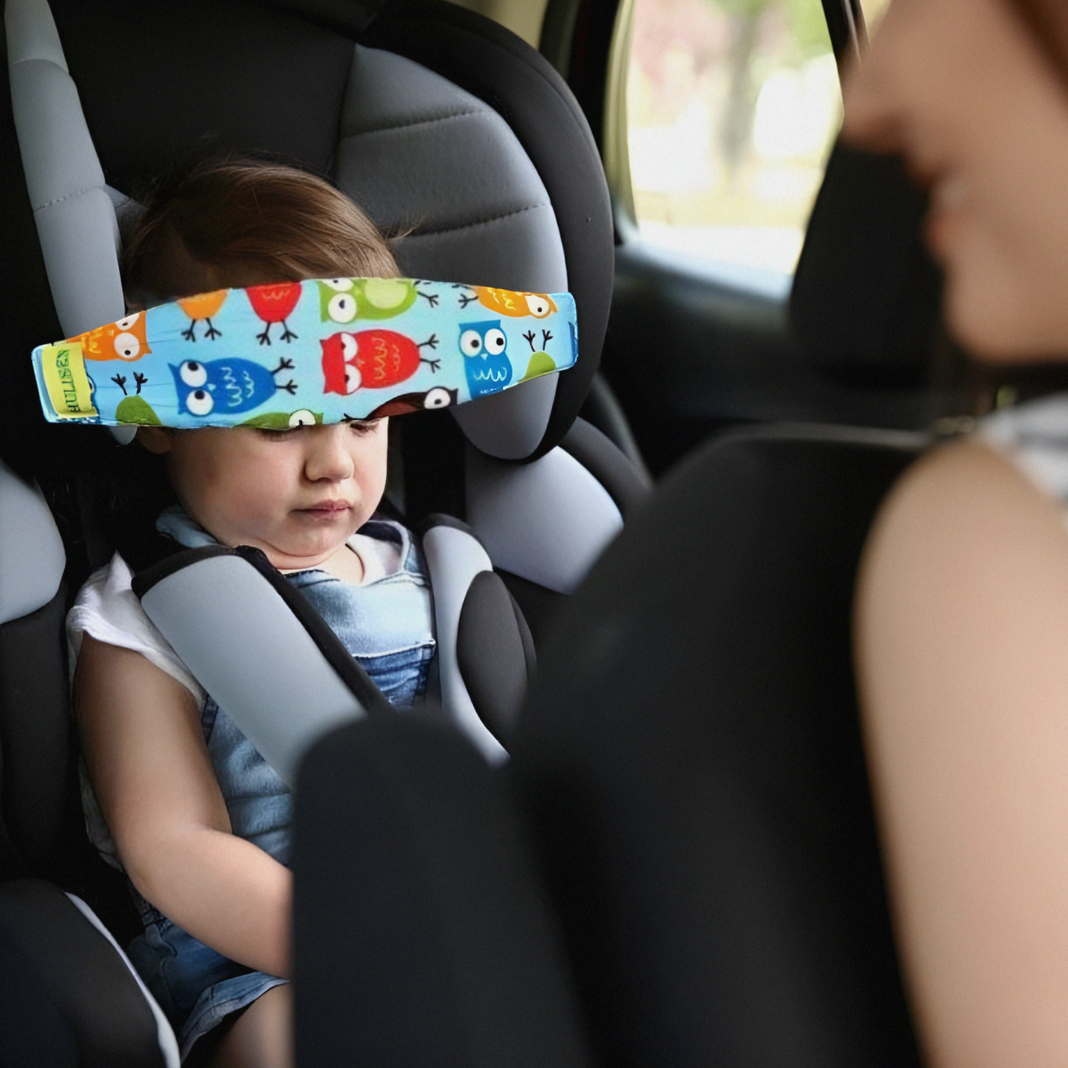Traka za glavu pridržava glavu deteta u sigurnom položaju prilikom spavanja u vozilu.
