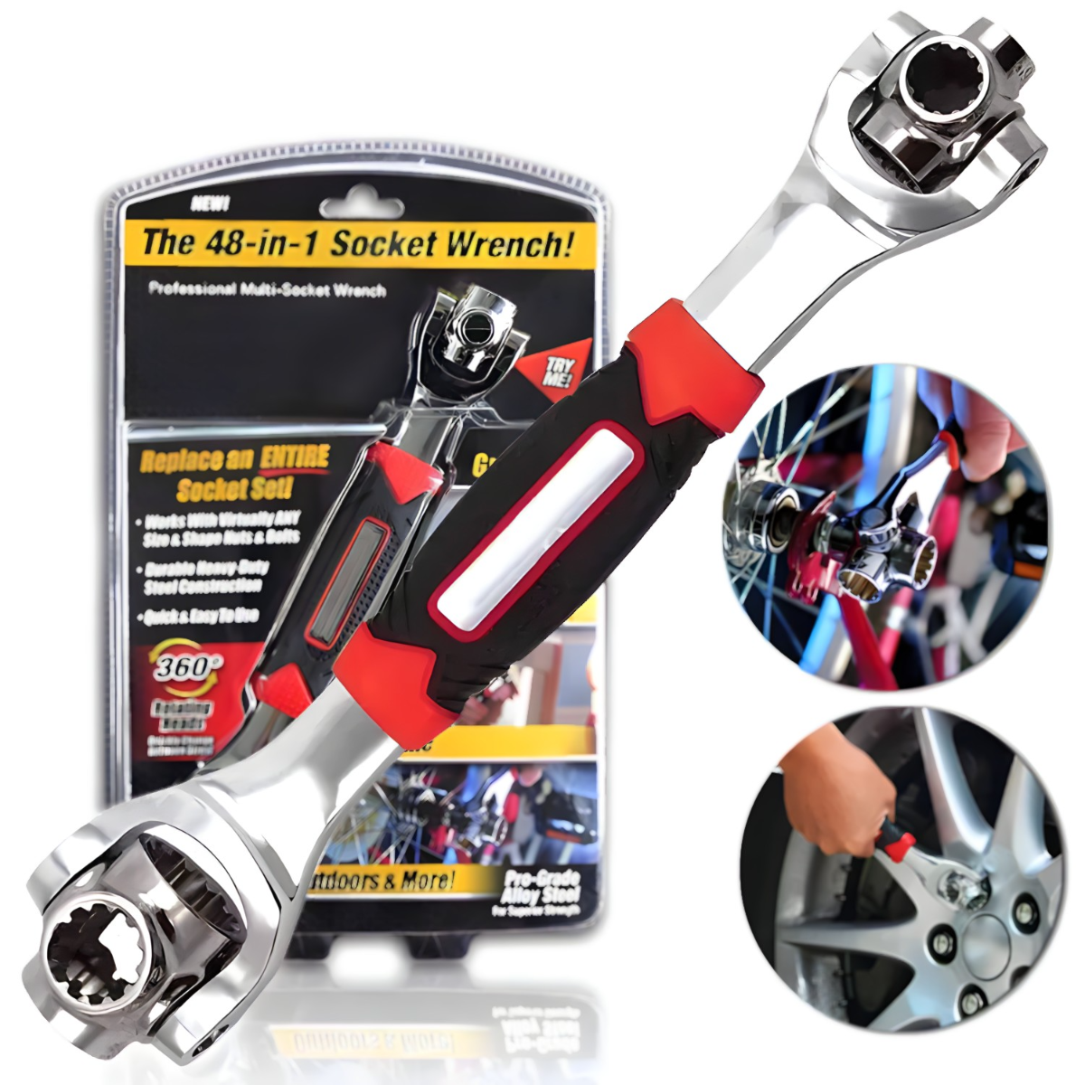 Univerzalan ključ 8 u 1 je alat koji će Vam uštedeti vreme i olakšati različite vrste popravki tako da više nećete morati da nosite teške kutije alata, višenamenske komplete ili ključeve – dovoljno je da ponesete jedan, univerzalan ključ i bićete opremljeni za popravku u dvorištu, kući, kolima, na poslu…