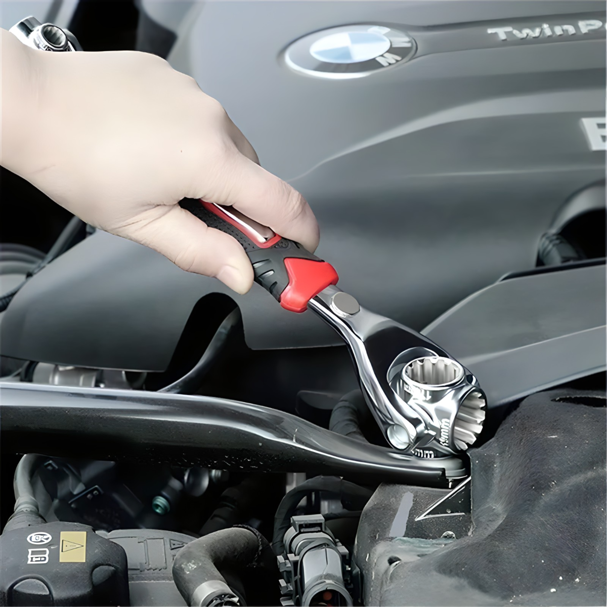Univerzalan ključ može se koristiti i pod uglom od 45 stepeni zbog čega je posebno pogodan za manje pristupačna mesta koja se retko kojim alatom mogu dosegnuti!