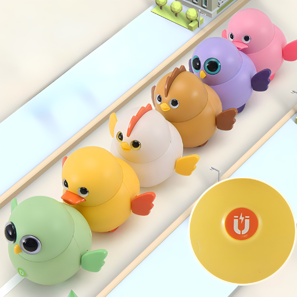 Zahvaljujući ugrađenim magnetima, pilići mogu da formiraju veselu povorku, jedan za drugim, što podstiče razumevanje koncepta privlačenja i odbijanja.