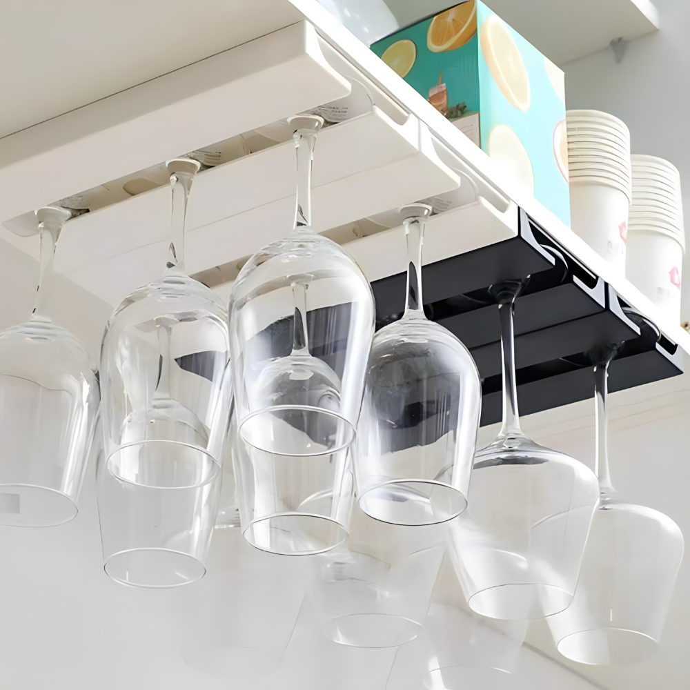 Vaše vinske čaše će uvek biti na dohvat ruke, a bezbedno smeštene. Držač omogućava da čaše vise u vazduhu, čime se sprečava njihovo oštećenje i omogućava lak pristup. Ovo je savršeno rešenje za sve one koji vole organizovan i uredan prostor.