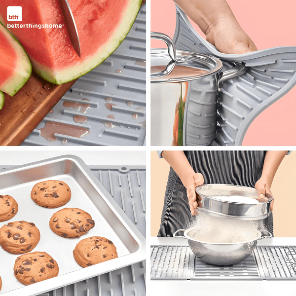 Nakon pranja voća ili povrća, koristite podlogu kao cediljku i održavajte radnu površinu suvom i urednom.