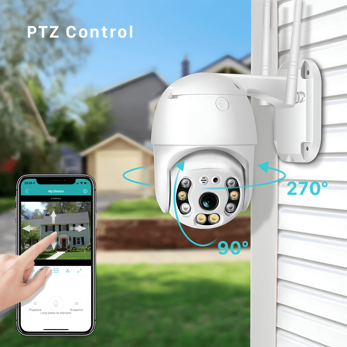 Kamera ima mogućnost horizontalne i vertikalne rotacije! Sve to lako možete podešavati preko aplikacije i birati ugao koji želite da posmatrate u tom trenutku. Ne morate više postavljati veći broj sigurnosnih kamera kako biste pokrili sve uglove.