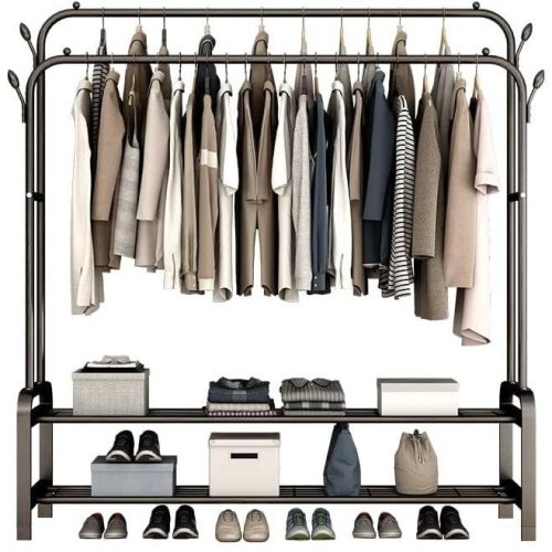 Ovaj XL dupli stalak za garderobu 162x96cm je savršen za sve koji žele dodatni prostor za organizaciju odeće. Sa dve šipke za kačenje, pruža maksimalnu funkcionalnost, dok dodatna polica ispod omogućava praktično odlaganje kutija za cipele, torbi i drugih aksesoara. Gornja šipka je savršena za haljine i pantalone, dok je donja šipka idealna za džempere, suknje ili majice.