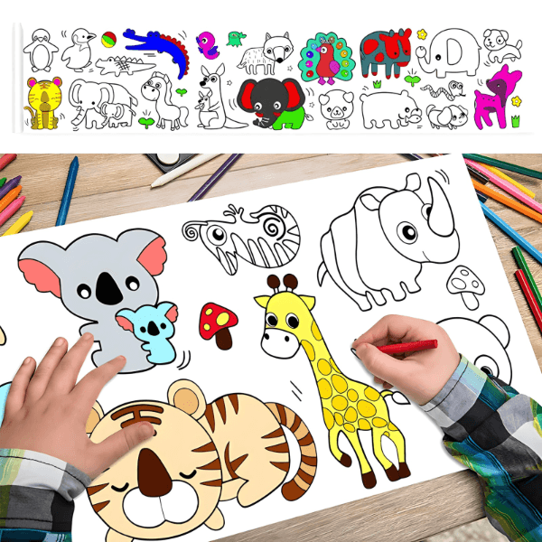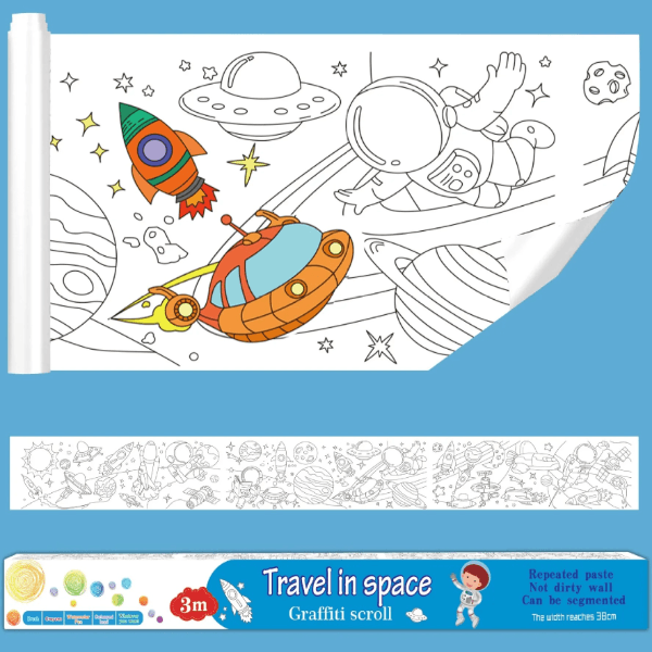 Sa mogućnošću da se iseče na željenu dužinu, naša bojanka se savršeno uklapa u svaki prostor, od dečije sobe do igraonice. Zalepite je na bilo koju ravnu površinu i gledajte kako umetnička dela vaših mališana oživljavaju.