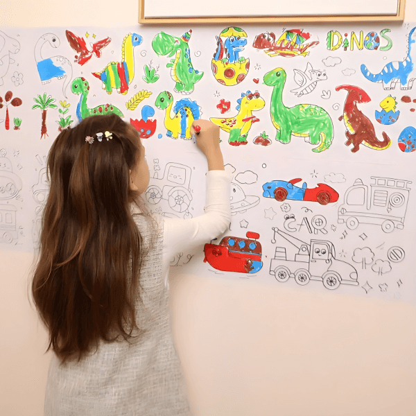 Zaboravite na stalna krečenja zbog šarenih zidova. Naša zidna bojanka omogućava deci da uživaju u bojenju bez brige za trajne tragove, jer je dizajnirana da štiti Vaše zidove dok podstiče kreativnost.