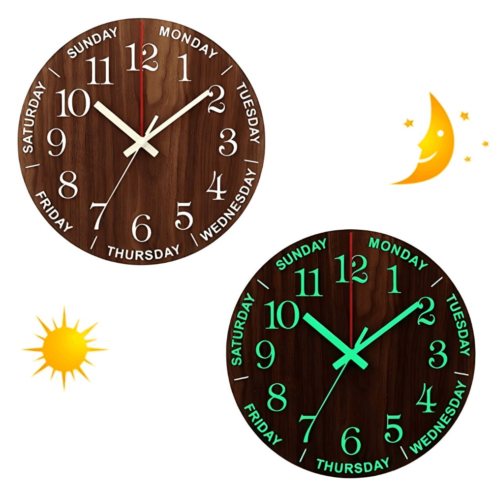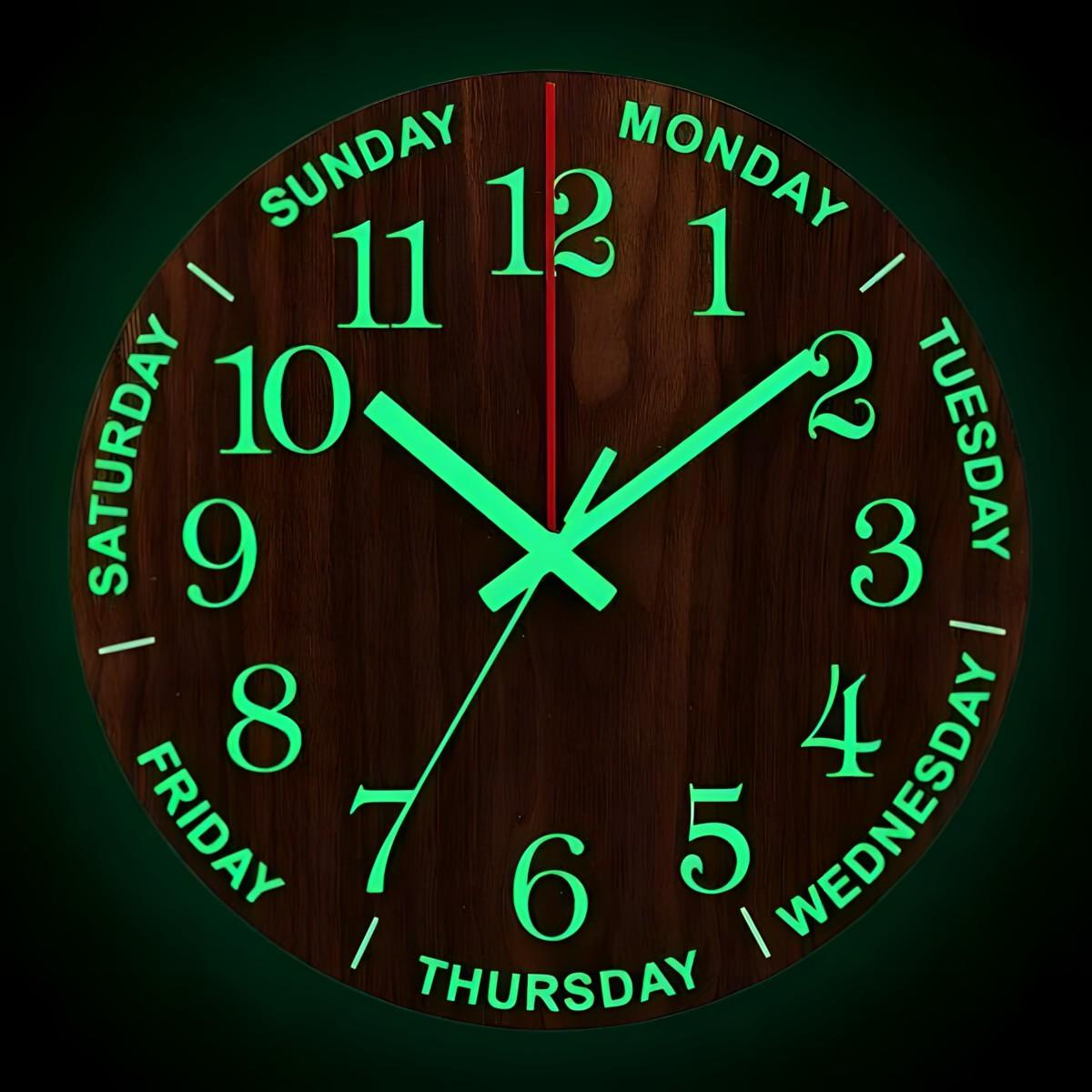 Veliki brojevi i jasne kazaljke omogućavaju lako čitanje vremena čak i iz daljine. Svetleće oznake čine vreme vidljivim čak i u mraku, što ovaj sat čini savršenim za noćnu upotrebu.