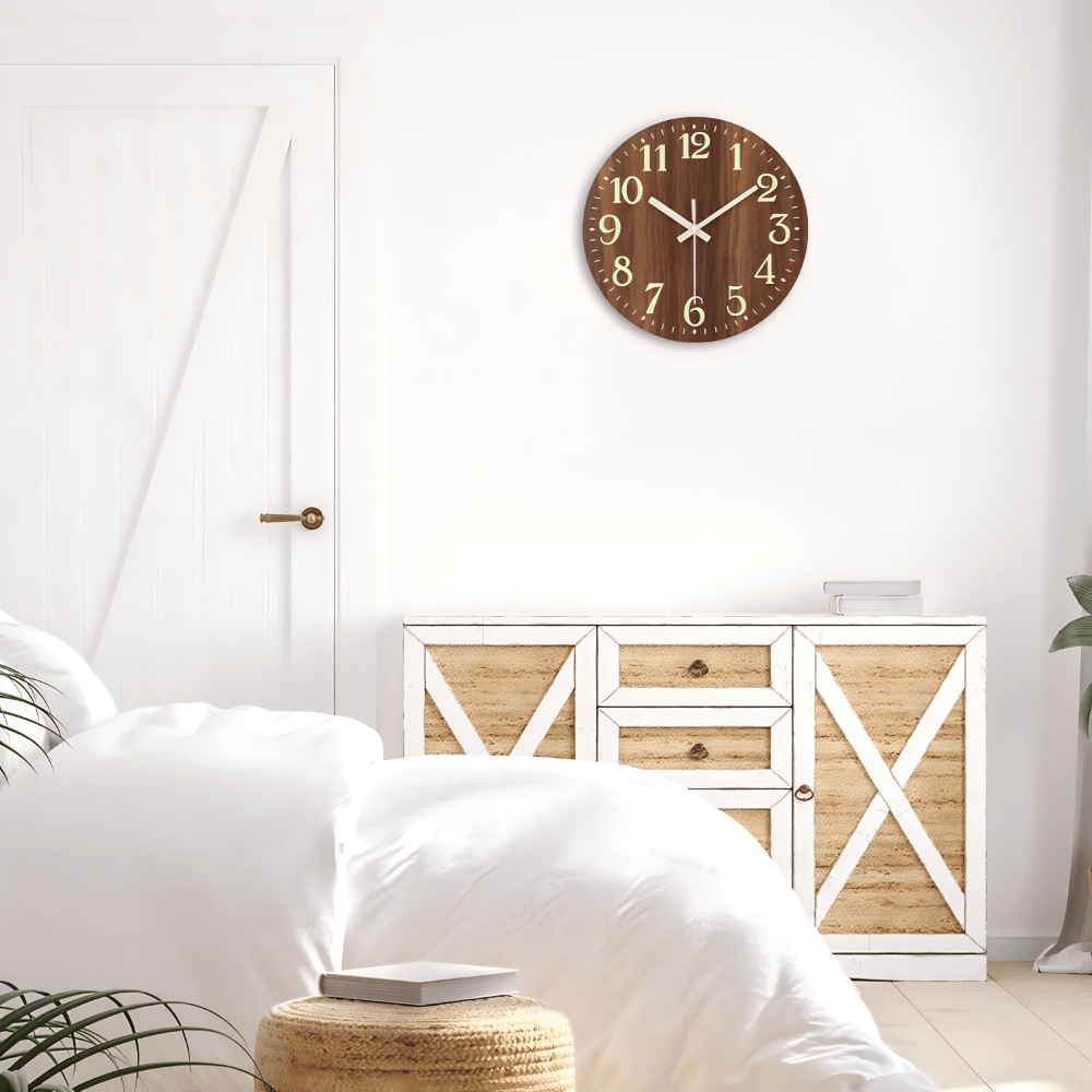 Ovaj zidni sat ima elegantan dizajn sa svetlećim oznakama i kazaljkama. Savršeno se uklapa u dnevnu sobu, kancelariju ili spavaću sobu, dodajući moderan izgled vašem prostoru.